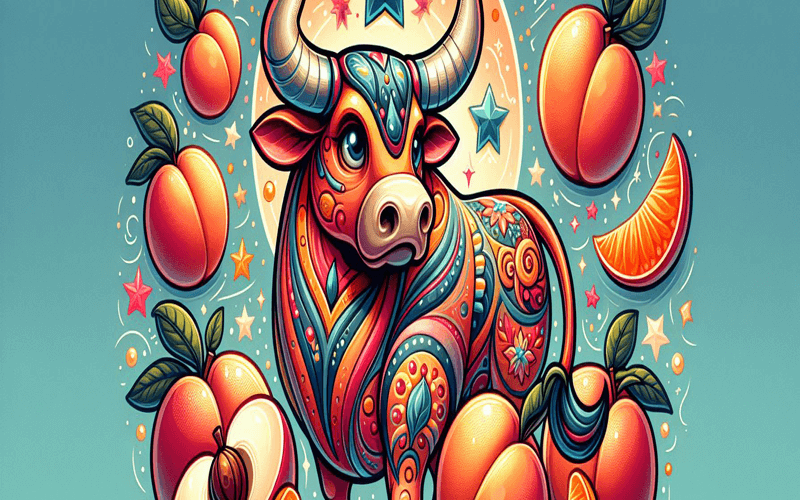 In the fertile plains of the Nectarine Orchard, a bountiful region within Vitamia where the trees bear fruit as sweet as honey, there charges a creature of boundless energy and nurturing spirit – Nectaurus, the Nectarine Bull. With fur the colour of a golden nectarine and eyes that radiate warmth and kindness, Nectaurus embodies the abundance and generosity of the orchard, its bellow echoing like the rustling of leaves in the gentle breeze. Its horns, strong and curved, are used to till the soil and plant new trees, its presence a symbol of growth and prosperity.